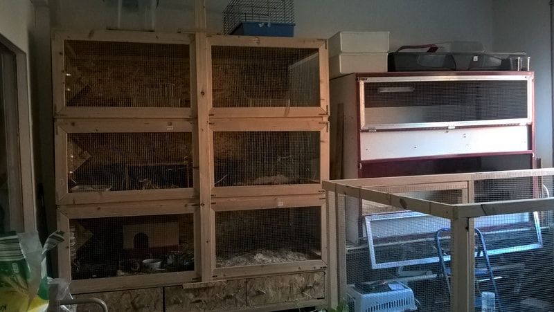 Für Ihre Kaninchen und Meerschweinchen habe ich geräumige Gehege von 1,5 m² und 2 m² da. Diese können auch für eine Chinchilla- und Deguhaltung entsprechend eingerichtet werden. Hamster, Farbratten und Mäuse wohnen bei mir in metrigen Glasgehegen oder entsprechend großen Käfigen.