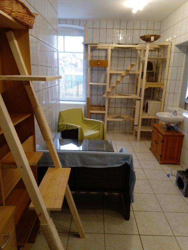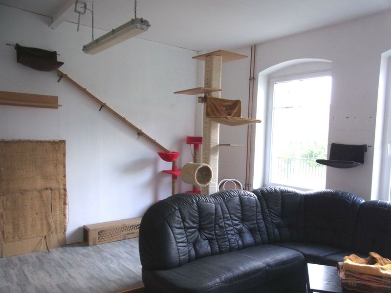 Dennoch kommen viele Katzen auch in Gruppenhaltung gut klar, da keine in ihrem eigenen Revier ist, das sie verteidigen muss, und da meine Katzenzimmer auch mit genügend Ausweich- und Versteckmöglichkeiten eingerichtet sind, um sich aus dem Weg zu gehen. Für junge verspielte Tiere, die was erleben wollen und Katzen, die sich vor nichts und niemandem fürchten, ist deshalb die Gruppenhaltung auch geeignet, sofern sie nicht dazu neigen, andere Katzen zu ärgern.